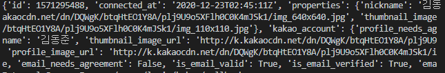 (5) kapi.kakao.com/v2/user/me 으로 access_token을 보내고 profile_json을 받아온다.