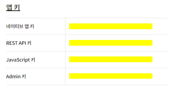 아래와 같이 앱 키를 확인할 수 있는데 REST API 키를 복사해준다.