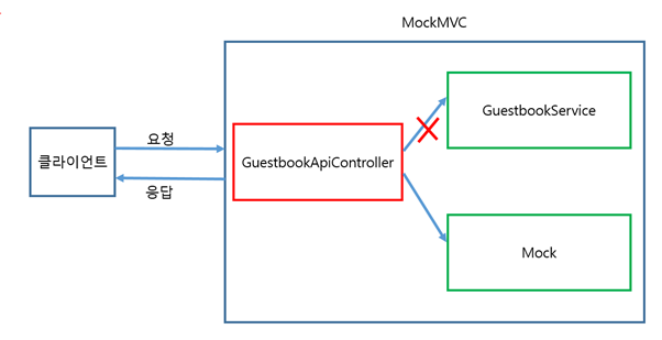 GuestbookApiController가 사용하는 GuestbookService에 대한 부분은 함께 테스트하지 않는다는 것을 의미한다.