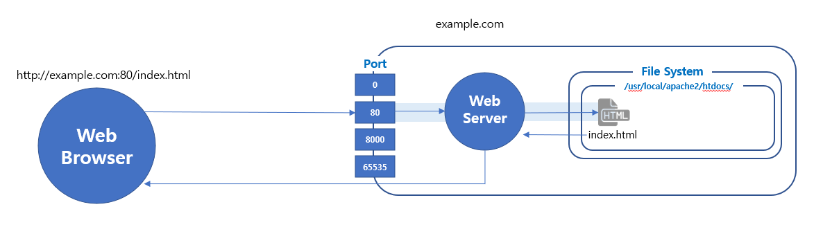 웹 브라우저에서 url을 입력하면 해당 포트번호에 맞는 80번 포트에 대기중인 Web Server로 요청이 전달된다.