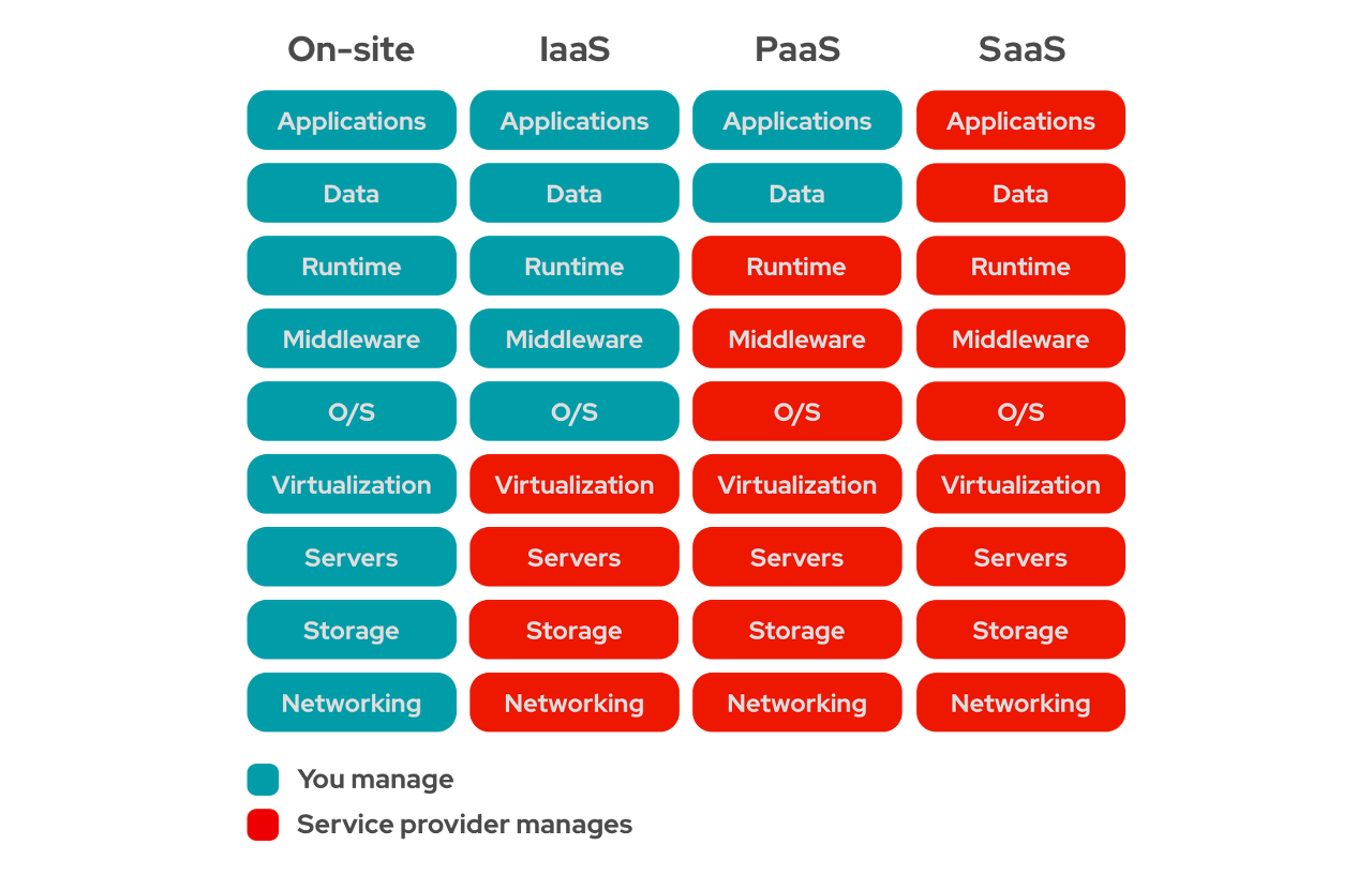 클라우드 컴퓨팅 서비스의 유형은 3가지로 나눌 수 있는데 관리 수준이 저마다 다르고,
