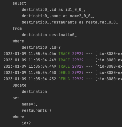 Destination 엔티티의 restaurants 컬럼과 스냅샷의 restaurants 컬럼을 비교하는 과정에서 해당 객체에 equals()가 구현되어 있지 않기 때문에 Dirty Checking이 발생하는 것이다.